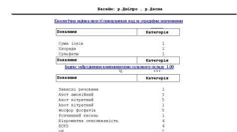 2. З групи "Показники" виберіть гідрохімічні інгредієнти, по яких Ви хочете мати статистичну інформацію. Вибір декількох показників здійснюється одночасним натисканням клавіші Ctrl та лівої кнопки миші. У вікні "Ви вибрали :" Ви можете побачити результат Вашого вибору.