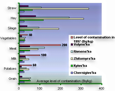Fig 3.5. Average contamination of agricultural crops by region (1998)